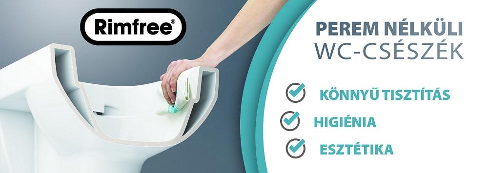 A higiénia szempontjából viszont a legproblémásabb rész a WC-perem és az alatti rész, ahonnan nagyon nehéz eltüntetni a vízkövet és a lerakódott szennyeződéseket. Ettől a problémától is könnyedén megszabadulhatunk, ha perem nélküli (Rimfree) WC-csészét választunk otthonunkba. Így örökre elfelejthetjük a WC-perem alól kifolyó fekete koszt, vízkövet és baktériumokat!